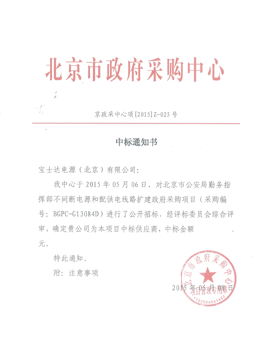 近日,寶士達UPS電源以創新的、完善的UPS冗余并機供電解決方案和高效的技術服務,成功中標北京市公安局勤務指揮部不間斷電源和配供電線路擴建政府采購項目,為北京市公安局勤務指揮部數據中心供電系統提供全面的、安全的、可靠的不間斷電力保障。