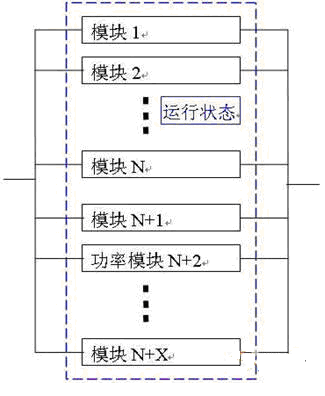(N+X)個模塊并聯(lián)形成一個表決系統(tǒng),在該系統(tǒng)中(N+X)個可靠度相同的單元組成并聯(lián)結構,其中有N個單元正常工作,系統(tǒng)就可以正常工作。